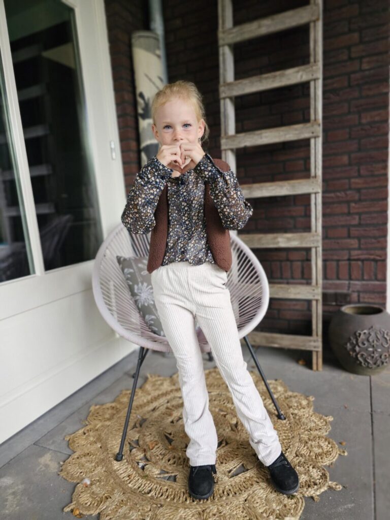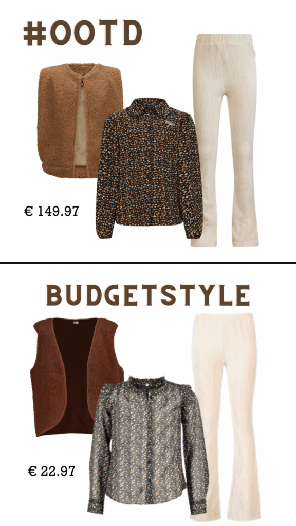 Deze outfit scoorde wij bij de Zeeman voor de fijne prijs van €22.97 . Het gilet kostte €6.99 – de blouse €7.99 – en de broek kochten we ook voor €7.99.