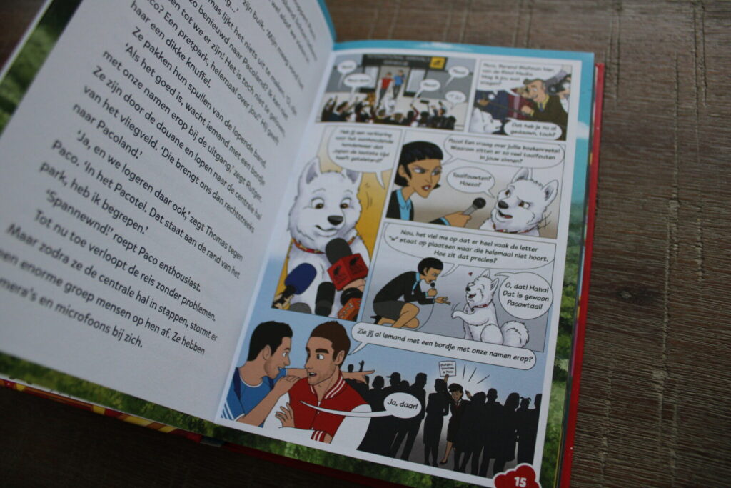 Het is een verhaal vol humor, dat maakt het grappig om te lezen. Het avontuur is ook wel spannend. Daardoor wil je ook blijven doorlezen tot het eind, want je wilt natuurlijk heel graag weten hoe het verhaal gaat aflopen! In het boek staat niet alleen tekst maar ook veel tekeningen en strippagina’s. De tekeningen zijn zo mooi, ze versterken het verhaal waardoor je als lezer helemaal in het verhaal zit.