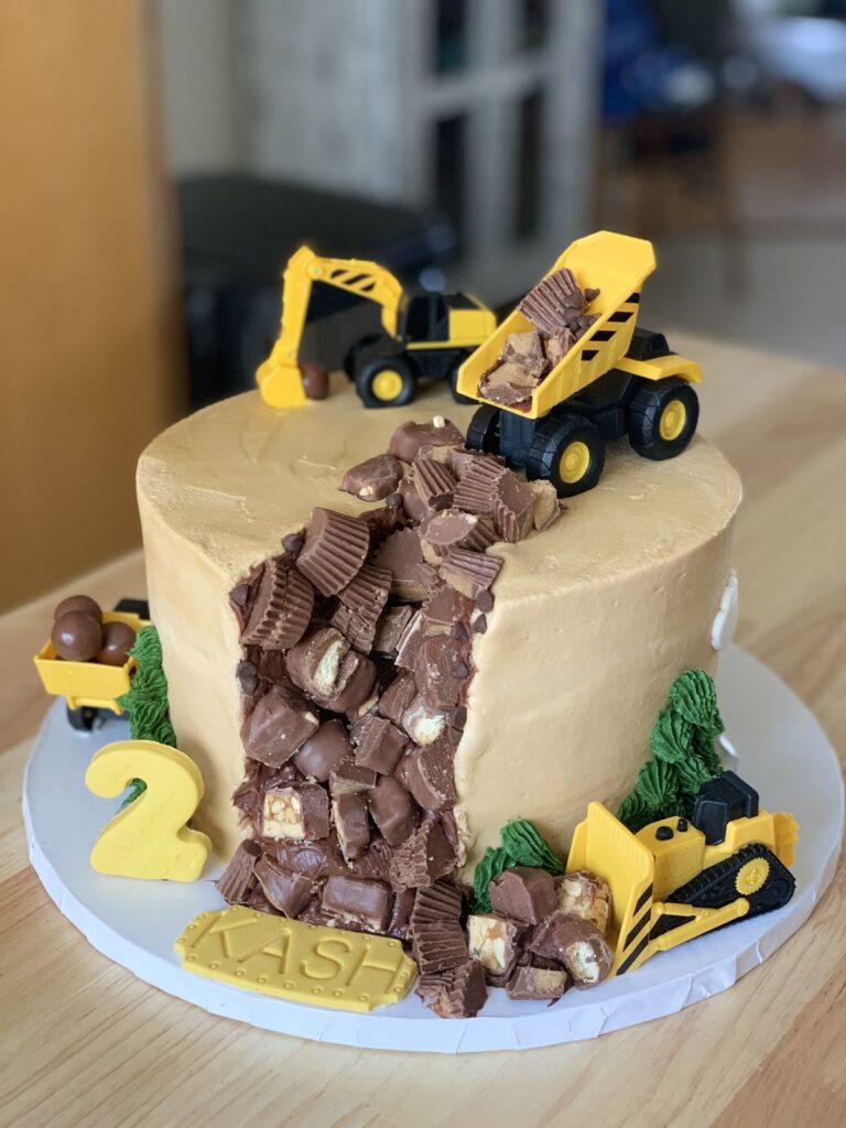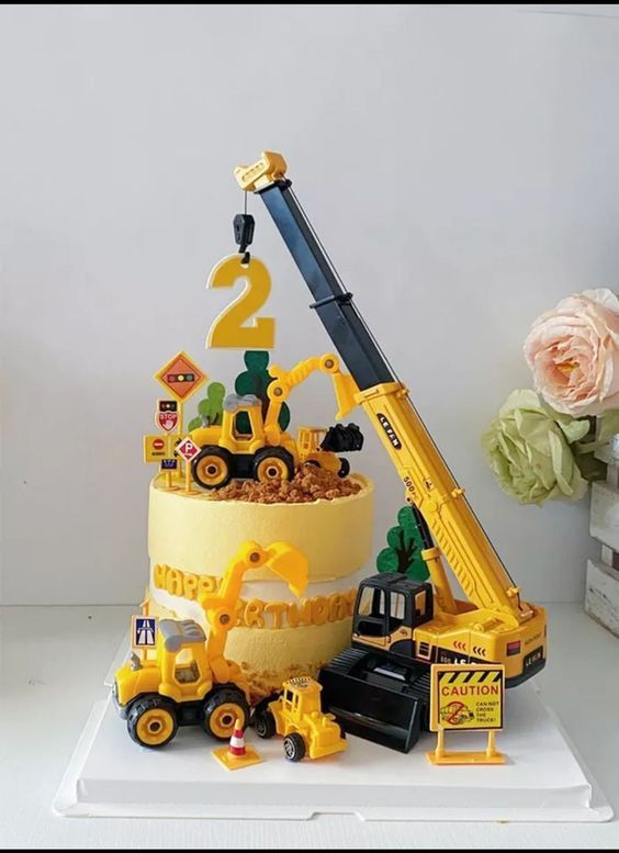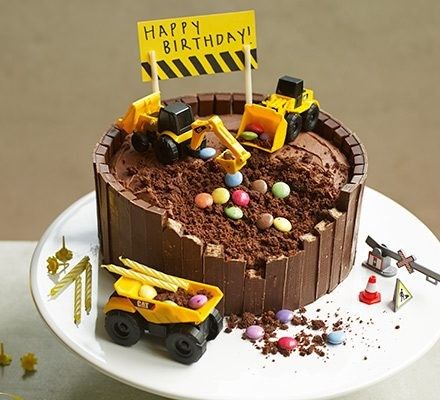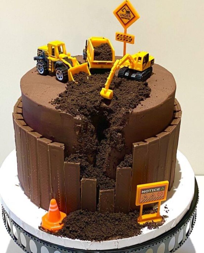 Voor jongens die gek zijn op alle grote voertuigen die aan de weg werken is deze chocoladetaart een groot feest! Met wat speelgoed auto’s, kranen of tractors krijg je een super stoere jongenstaart.