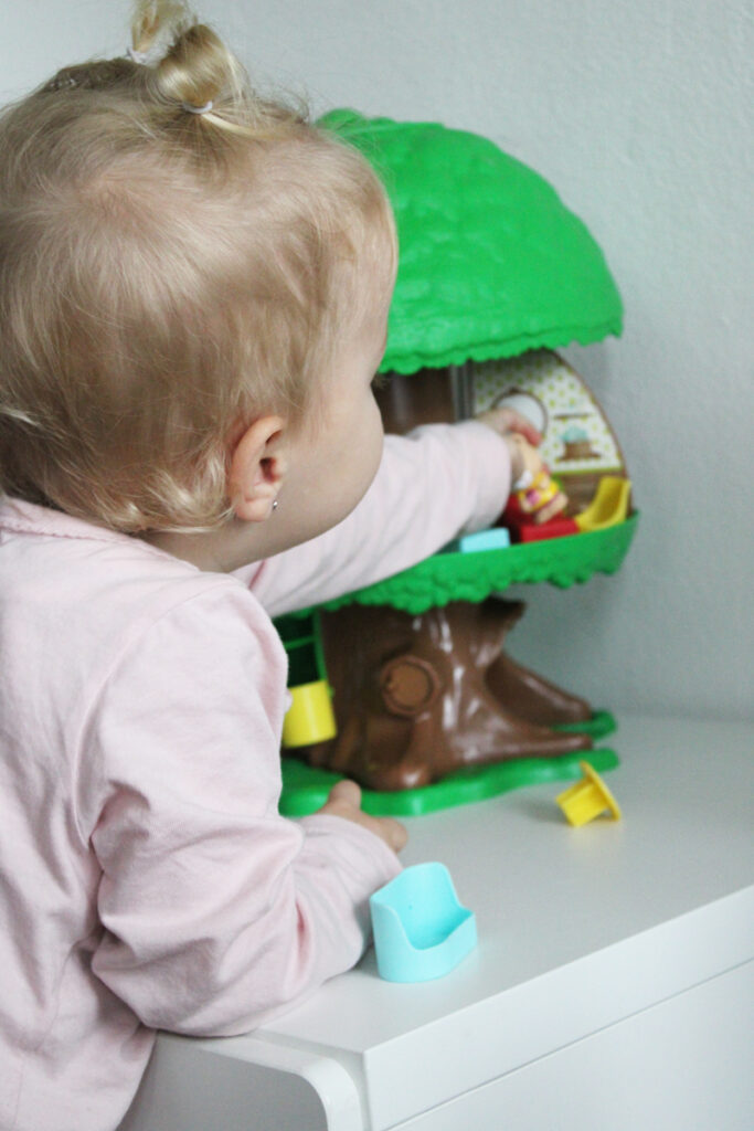 De reactie van Vienna was zo mega lief! Ze ging gelijk op het boompje af en wilde meteen spelen. Zo ontzettend leuk! Nu heeft ze ook echt de leeftijd dat ze ook echt een soort rollenspel wilt spelen. Zo ontzettend lief.