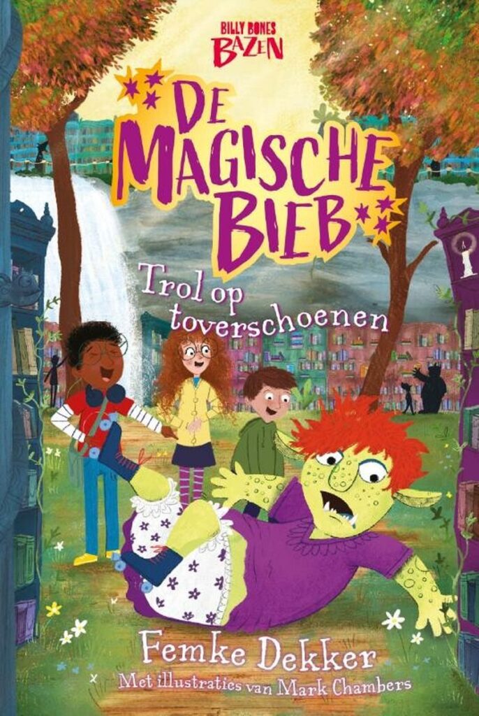 Er is een magische struik in de bieb. Wat zit daar toch achter? Dat gaan Wilgje, Jonas en Stan onderzoeken! Ze komen terecht in een bieb vol elfjes, feeën, heksen en… een grote trol. De trol denkt dat Wilgjes rolschaatsen toverschoenen zijn. Die wil ze hebben! Hoe legt Wilgje uit dat het gewoon rolschaatsen zijn? En krijgt ze ze nog wel terug?