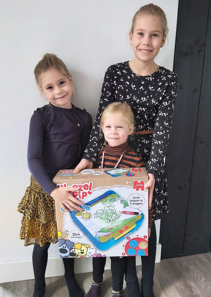 Wat er nou toch voor een tof pakketje bij ons gebracht werd! Het leek wel al sinterklaas.. Papa kwam met een grote doos binnen en zette hem boven op de tafel. Zo, maak maar open meiden.. Drie grote glimlachen kwamen tevoorschijn en nog groter werden ze toen ze zagen wat er in de doos zat: Dessineo Woezel & Pip