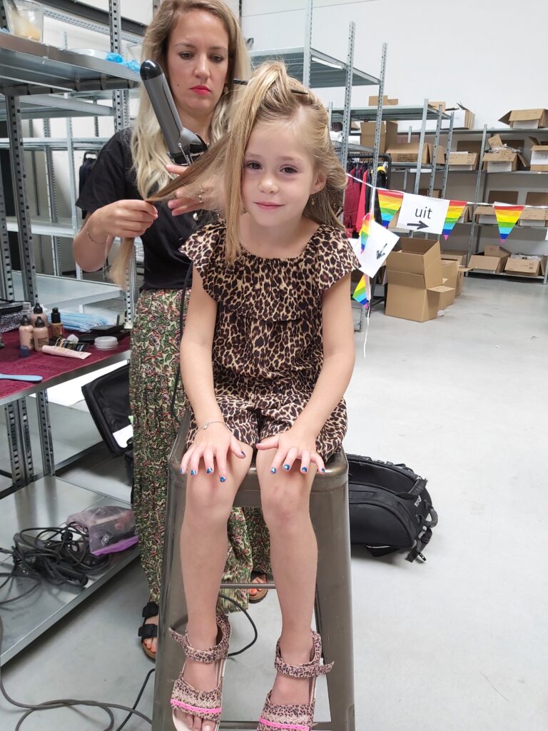 Jez heeft haar shoot inmiddels gehad en ze vond het helemaal geweldig om te doen. Lekker vertroeteld worden tijdens het doen van haar haar en make-up en ook de nageltjes werden gelakt. Daarna mocht ze natuurlijk verschillende mooie setjes voor de zomer 2021 gaan showen. Super gaaf zo’n rek waar dan de kleding op hangt die speciaal voor jou is uitgekozen met natuurlijk jouw foto’s eraan gelabeld. Na het omkleden van de setjes werden steeds de haren weer opnieuw gestyled en ook werd er veel met sieraadjes en accessoires gewerkt, ze maakten er in alle opzichten een feestje van voor de modelletjes.