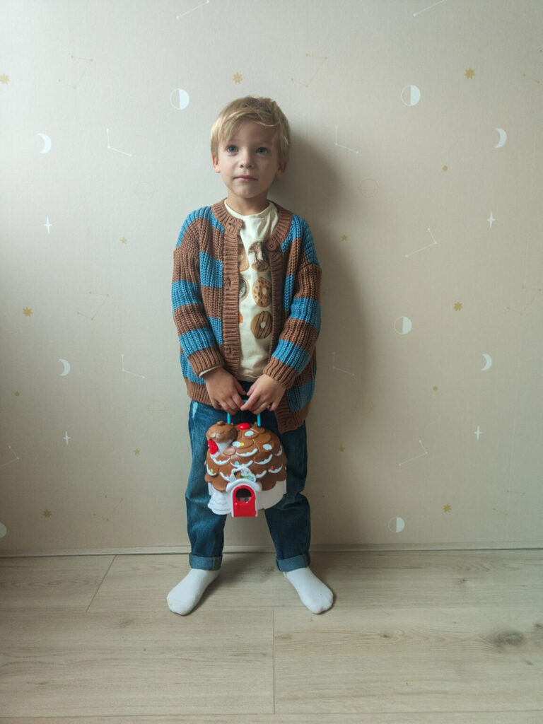 Waar Morris voorheen bijna alleen maar met voertuigen wilde spelen ontstaat er sinds hij op school zit meer ruimte voor ander soort speelgoed. Hij begon vlak voor hij vier werd al meer rollenspel te spelen en dit gebeurt nu eigenlijk dagelijks. De speelset Dennenappel sluit hier goed bij aan.