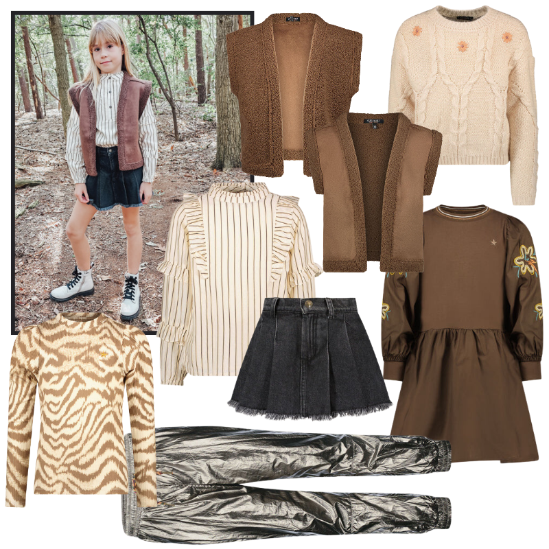 De musthave voor in je kledingkast is een gilet. Jez ging voor het bruine lammy gilet ‘Dana‘ en wat super tof is, is dat je deze aan 2 kanten kunt dragen. Een gilet is super gaaf over een blouse, maar ook zeker over een jurkje of longsleeve. Je kunt dus vele kanten op met een gilet en wij vinden dan ook dat elk meisje er één moet hebben!