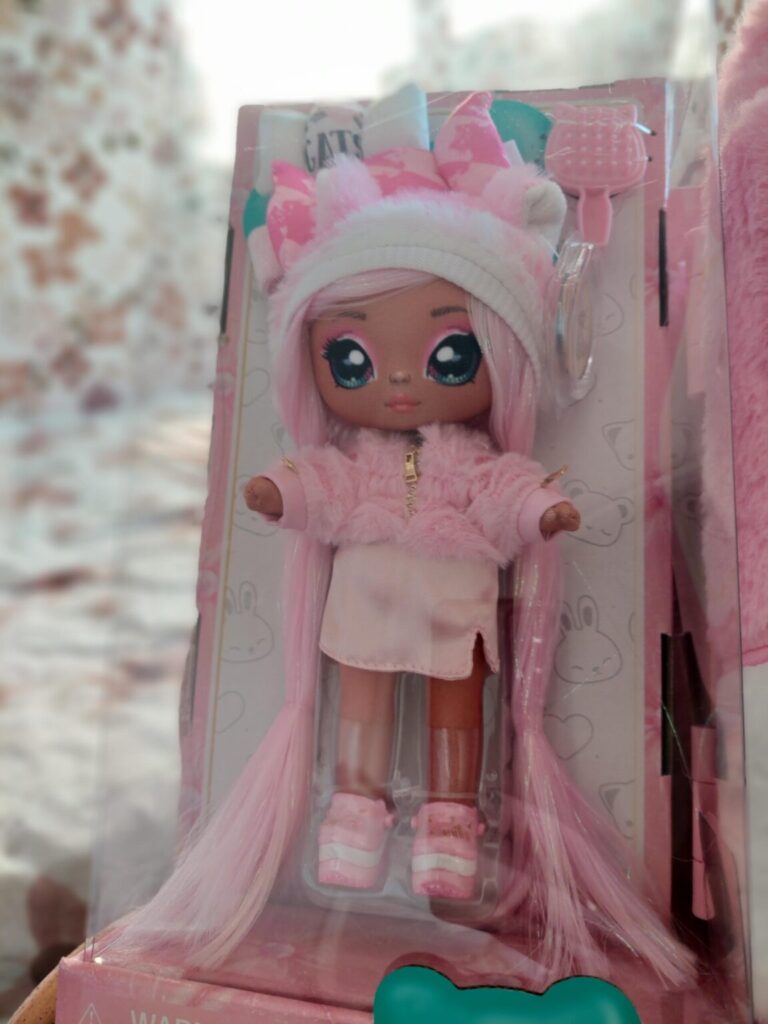 Reena heeft prachtig lang haar, een pluizige muts en ze draagt een exclusieve outfit en schoenen. Als je klaar bent met spelen, pak je alles weer in en neem je de rugzak onderweg mee. Twee stijlen om te verzamelen. De Na! Na! Na! Surprise zachte modepoppen en speelsets zijn helemaal te gek voor je meisje.