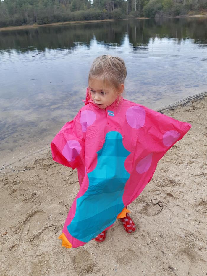 De poncho is heel handig om voor kindjes zelf aan te doen. Over het hoofdje trekken, handjes erdoor en klaar is kees! Een kind kan de was doen. Ze hebben de poncho’s in verschillende prachtige designs, echt een feestje om te dragen. Jez wil hem het liefst elke dag al aan, maar voor nu wachten we nog even tot het gaat regenen. Even een tip! Dit is ook een erg leuk cadeautje voor 5 december.